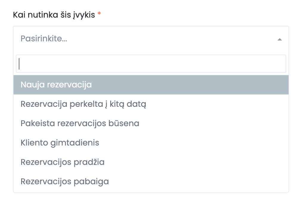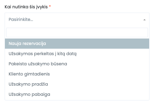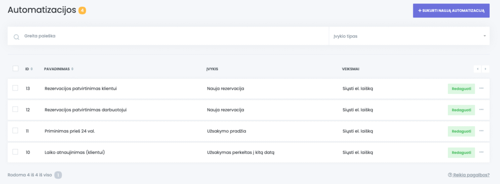 - Eikite į meniu: Rezervacijos → Automatizacijos.