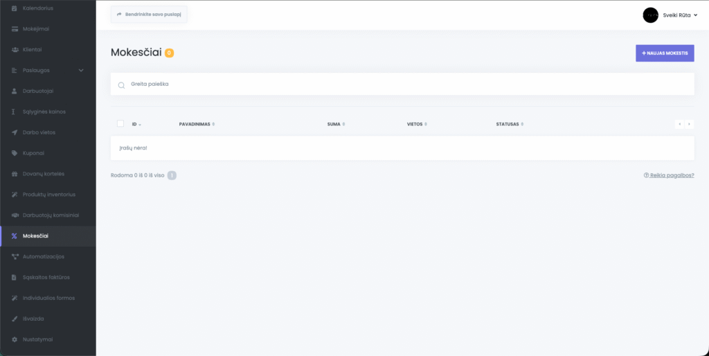 Jei jūsų planas nerodo „Mokesčių“ funkcijos, tai reiškia, kad ši galimybė įtraukta tik į aukštesnius BOOKO planus. Tokiu atveju galite susisiekti su mūsų komanda dėl plano atnaujinimo.