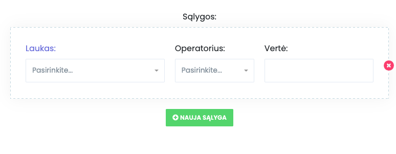Atidarius langą „Pridėti sąlygą“, reikia užpildyti šiuos laukus: