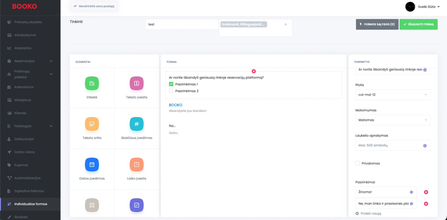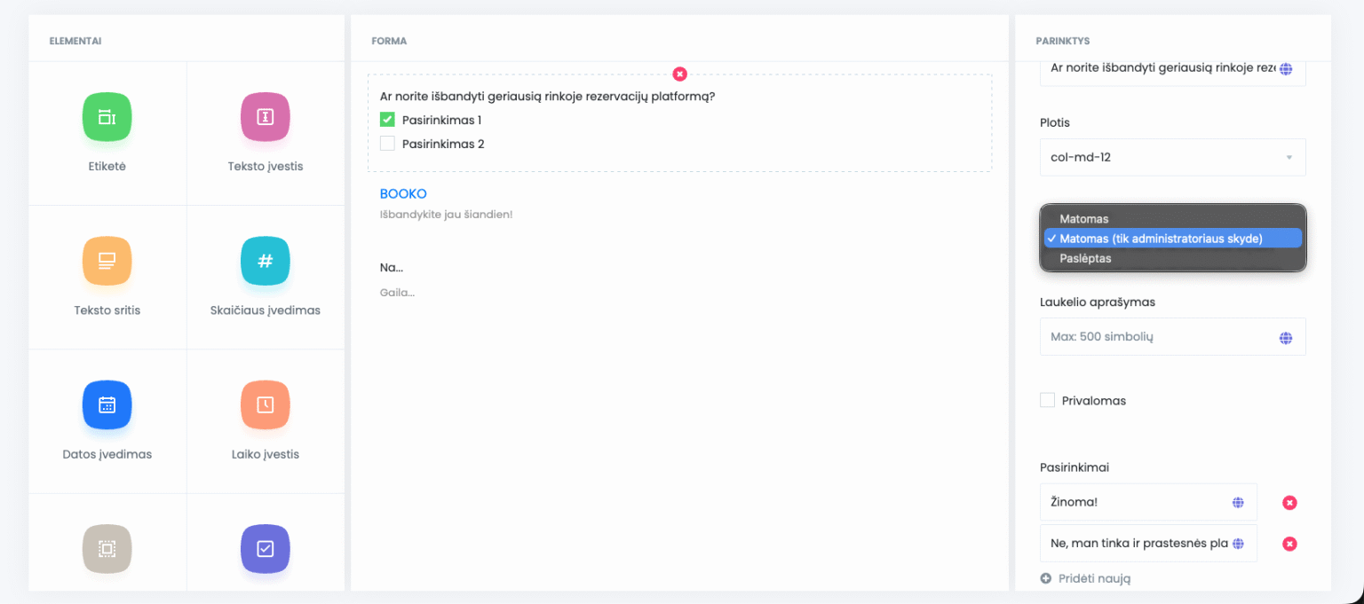 Tam BOOKO siūlo patogų formų kūrimo įrankį, leidžiantį viską susikurti savarankiškai – be jokių programavimo žinių.