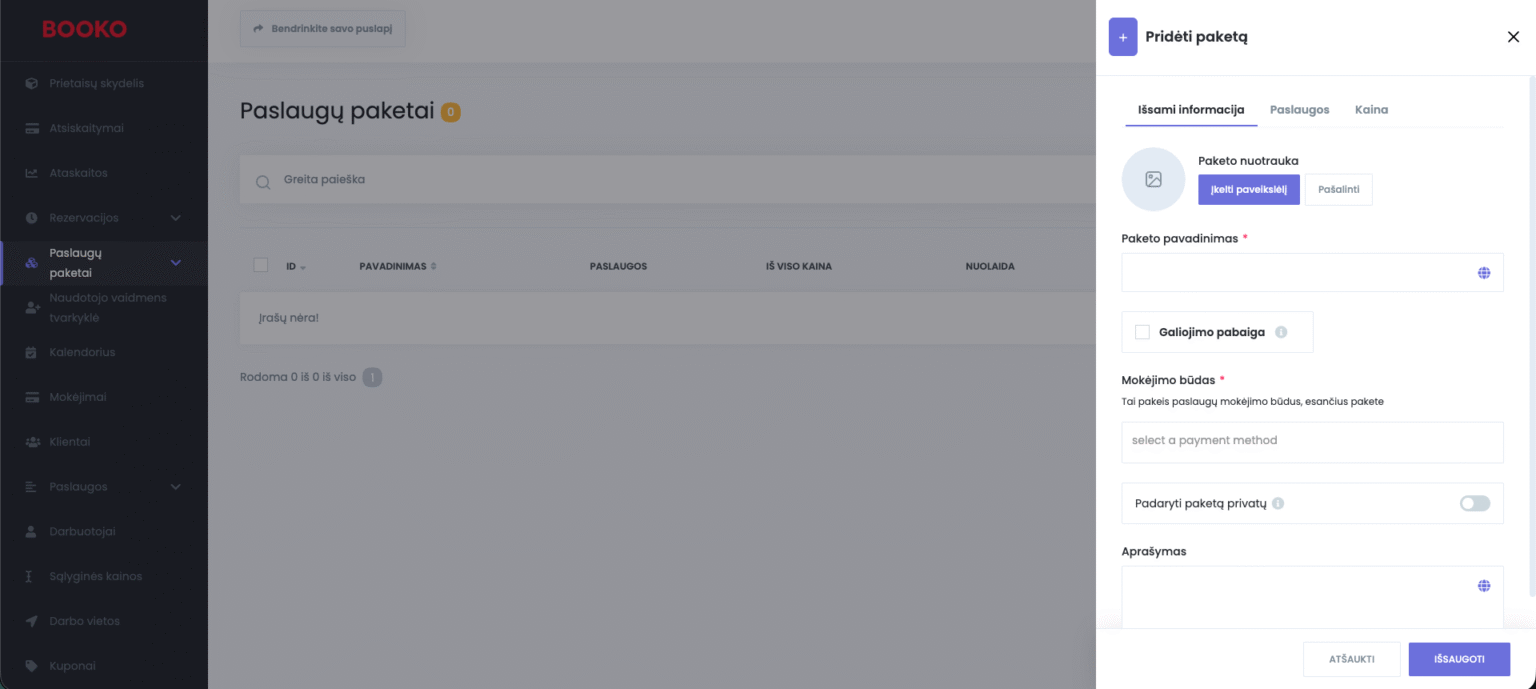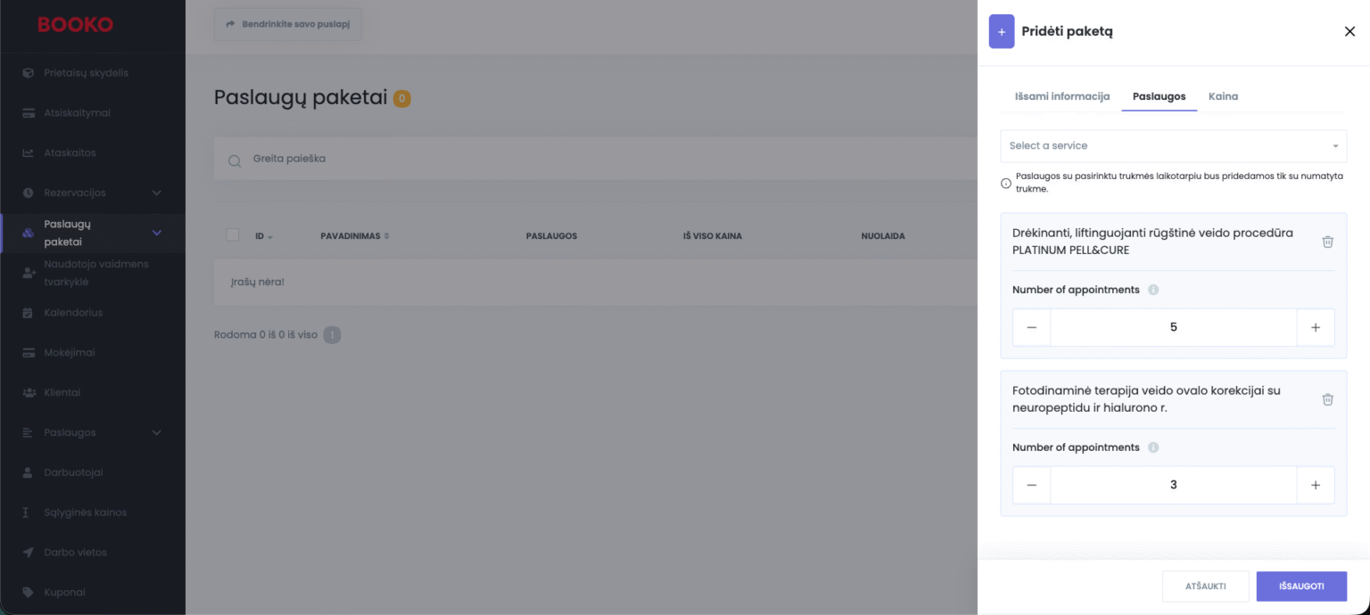 BOOKO funkcija „Paslaugų paketai“ leidžia jums kurti, valdyti ir parduoti paslaugų rinkinius, pritaikytus jūsų verslo poreikiams.